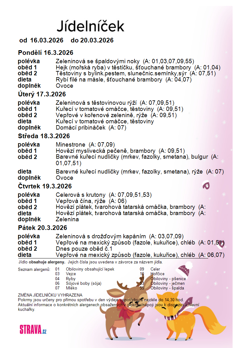 Jídelníček 16. 3. – 20. 3. 2026