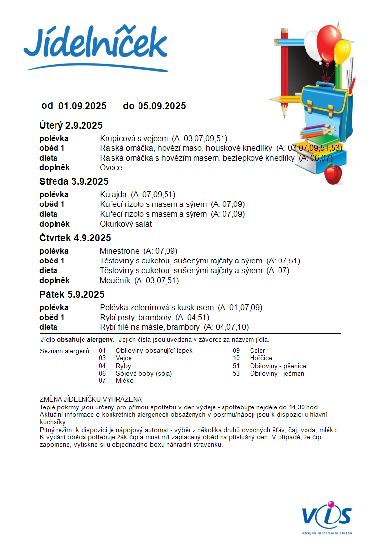 Jídelníček 2. 9. – 5. 9. 2025