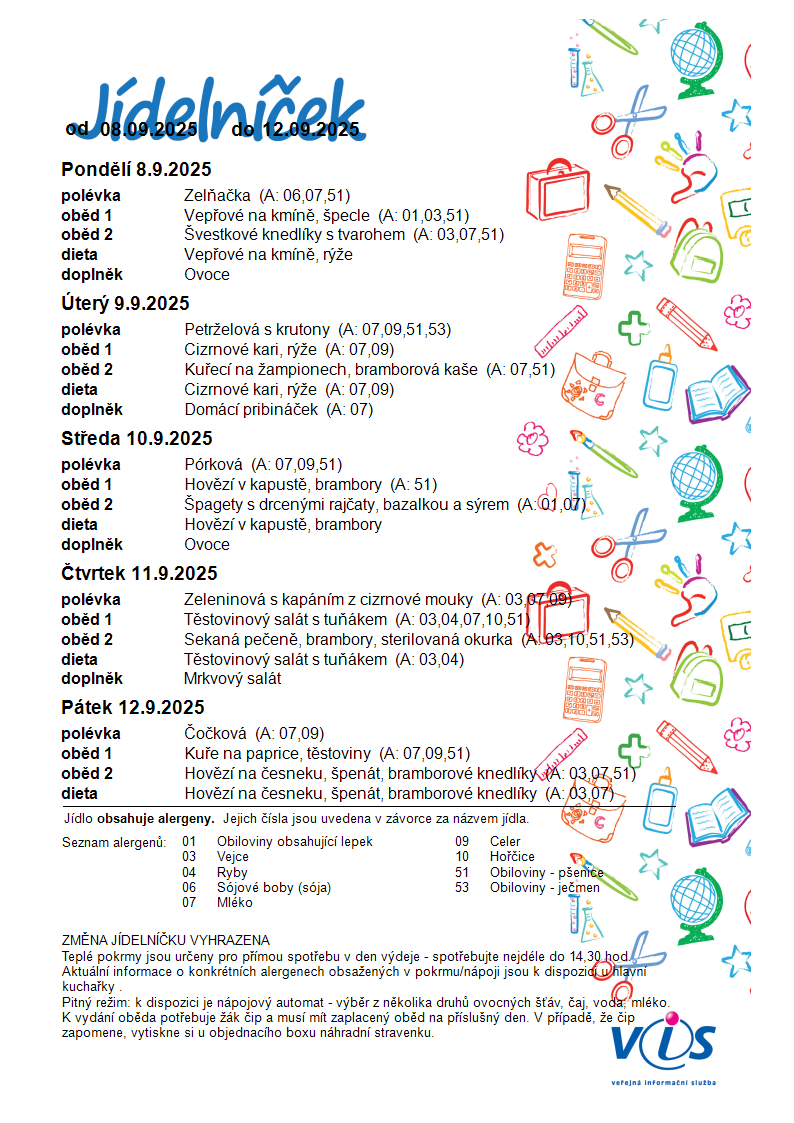 Zkontrolujte si, prosím, prostřednictvím webových stránek www.strava.cz, zda máte obědy přihlášené/odhlášené. Případně pošlete e-mail: jidelna@zsrudna.cz.